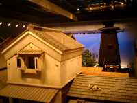 入館券を支払って中に入ると、想像以上に広々としたホールの2階付近に出る。ホールの中は、ディズニーランドのアトラクションみたいに、白壁の土蔵や長屋が並ぶ街並みが現れる。下に降りると、まさに江戸の街並みに迷い込んだと言っても言いすぎではないような不思議な感覚になる。建物の中にも勝手に?上がり込んで、くつろぐことなどもできたり、建物と建物の間のわずかな路地も歩いたりすることもできる。全体的に薄暗いのも、そういったムードを盛り上げるのに寄与している。ちょっと別の展示を見ていたら、突然雷がなりはじめて、雨が降ってきた。もちろん本物の雨が降ったわけではないけれど、しばらく過ごすのも楽しい。地下の集会室?では、江戸の遊びの講習会をやっていて、みんな真剣に皿回ししていた。