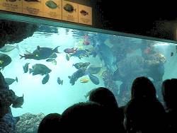 マグロの餌付けショー?は、エサを奪い合うマグロの激しい泳ぎを見ることができる。そのうちの一匹のマグロを見ていたら、いつまでも食べられずにいたので、人間の世界同様つらい奴もいるのだと思った。