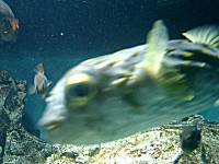 今日は、まだ8月というのにかなり肌寒い小雨の降る日曜日だったが、ぐるっとパスの有効期限もそろそろ切れる時期だったので、思いきっていってくることにした。肌寒いから外に遊びに行けないと考えた人が多かったせいか、園内はかなりの混雑。お目当ての水槽を見ようにも、まずはお客さんの頭越しと、お客さんの隙間からのぞき込むしかない。行儀良く並んでいると、列が徐々に進んでいって、水槽が目の前ににやってくる。 日ごろ、泳ぐ魚をライブで見る機会はあまりないから、ただ泳いでいる魚を眺めているだけでも、なんだか楽しい気分になる。