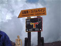 これまでは河口湖口の下山道と共用だったので、かなりたくさんの人たちと一緒に下りてきたが、ここで二手に分かれる。 毎年かなりの人数が下山道を間違えるのだそうだ。 途中で見知らぬ外国人の家族連れから、自分たちの下りる下山道は合っているか?と訊ねられた。
