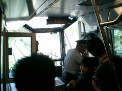 名古屋から万博八草駅まで約40分。途中名古屋市内の駅と、乗り入れをする愛知環状鉄道と接続する高蔵寺以外はすべて通過するので、まさに万博に行く人のための列車…と思いきや、意外と途中での乗り降りがあったが、乗っているほとんどは、万博へ行く人たちだった。 万博八草駅でリニモに乗り換え。10両編成のエキスポシャトルから下りた人たちが、わずか3両編成に乗ろうとするのだから、混雑するのは当然で、乗り換え口はたくさんの人たちであふれていた。その整理をする係員たちが、それぞれ各自の拡声器で注意を呼びかけるものだから、大変な騒々しさだった。