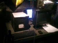 blueはソニーの開発したプロジェクターで迫力の映像を楽しむコースで、orangeはNHKのハイビジョン映像と読売新聞による地球と生命の歴史を振り返る展示となっている。いずれも万博ならでは…といった趣向の凝らされた内容だったと思う。 そしてお待ちかね、冷凍マンモスの見学は、動く歩道に乗る間しか見られないから、予想通りあっという間の出来事…として終わってしまう。一番の関心は、そこでダミーとのツーショットができるかだったが、無情な「撮影禁止」。しかもマンモスの展示は全体に薄暗いから、フラッシュ無しではどうしようもない。仕方なく、目に焼き付ける。マンモス最大の特徴のひとつ、長い毛はもちろん、肌のヒダまでもがしっかりと残っていて、かつて実際に生きていたんだと実感させられる。