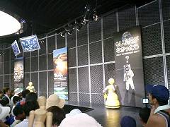 三菱未来館は「もしも月がなかったら」というテーマで月の誕生から、地球に月がなかった場合の現在との環境の違いなどを映像で伝えるパビリオン。なかなか興味深い視点で取っ付きやすいテーマだったこともあってか、映像の終わりには拍手もあがっていた。できればもう一回見たかった。 JR東海超電導ラボは、超電導の秘密をわかりやすく説明するパビリオン。他のパビリオンと違って、多少勉強色が強い感じの内容だけに、関心の度合いによって、評価は分かれるかもしれない。 |