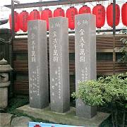 路地をそのまままっすぐ行こうとしていたら、新宿区のボランティアの人に「見ないと後悔するよ」とまで言われたので、寄ってみることにする。 まぁお墓がああるっていうことだけなので、これといってすごい!っていうことはないが、ここに服部半蔵が眠っているんだなぁ…なんて思ったが、そもそも服部半蔵のことは、よく知らなかったので調べてみた。案内している人が「忍者ハットリくんのモデルになった人です」となんて言っていたが、実際の本人とは全然イメージが違うんだけど…。モデルになったのは、名前だけのような気がする。そもそもなんであんなマンガになっちゃったんだろう? 住宅地の中を歩いていくと、お稲荷さんの幟が左右に見えてきた。どちらもお稲荷さんのようだ。左側は於岩稲荷田宮神社で「お岩のゆかりの地」とのこと。そういえば四谷怪談って言ったっけ。実は四谷怪談のこともよく知らない。出発前にもらったパンフレット(…というか、コピー)によると、そもそもお岩さんの話自体がお芝居だったと知らなかったのは不覚。知らないこと多すぎ。パンフレットと同じ内容がこちらに書かれてる。