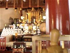 本殿正面のガラス戸の隙間から覗き込むとご本尊様を拝むことができる。中央に、でんとお座りになっていた。