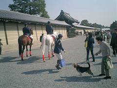 太陽の塔にしても、EXPOホールにしても、もうちょっとじっくり見たかったが、急いで後にしたのには訳がある。 一年に2回しかない、京都御所の一般公開がちょうど今やっているからだ。モノレールと阪急線、市営地下鉄を乗り継いで、御所の最寄り駅である今出川駅へ。最初、最寄り駅が河原町と勝手に思いこんでしまって、そのまま乗り過ごしそうになったが、たまたまホームに貼り出されていた案内を見て、慌てて電車を降りた次第。さらに公開時間も午後3時までだったということも、この貼り紙を見て知った。時間はすでに2時半を回っていた。あまりの計画性のなさに自分でも情けなくなった。変なところで気が大きいというか、大らかというか、ずぼらなのだ。