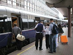 かなり長い編成で、スーツケースを持って乗る場所を探すのに、ちょっと苦労した。 |