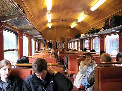 車内は、登山鉄道という特殊な環境であることを忘れさせてしまうほど、ゆったりと大きな造りで、木を多用した内装が暖かみを感じさせる。観光客は世界各地から集まっている感じで、見たところ日本人は、オスロから一緒にやってきた家族連れだけのようだった。