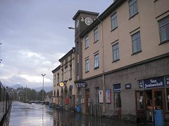ちょうどついたときには、大雨が降っていて、バスから降りた人たちは駅舎に入るしかなく、ただでさえ狭い駅舎の中はたくさんの人たちでごった返していた。