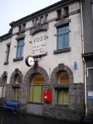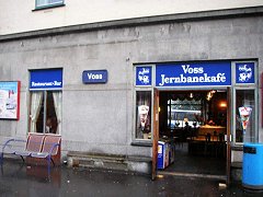 ヴォスの駅舎の壁には、標高57m、オスロまで385km、ベルゲンまで106km と書かれていた。 |