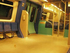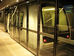 全自動運転らしく、プラットホームと電車の間には仕切りのドアがあって、電車の到着に合わせて開くようになっている。