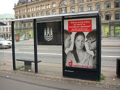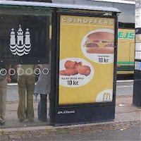 バス停にあったマクドナルドの広告。チーズバーガー、フライドチキン?がそれぞれ、10デンマーククローネ。このときの日本円に換算して、200円。まぁこんなものかな?