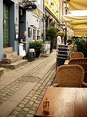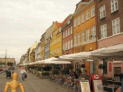 デンマークの街を紹介するパンフレットには必ずと言っていいほど、登場するのがここ、ニューハウン。運河に沿って独特の建物が並ぶ光景は、日本で言えば小樽運河みたいなもの…違うね。昨日の一番賑やかなときに比べて、今朝はとても静か。当然お店はやっておらず、開店の準備と店の前の道路の清掃をしている人たちの姿が見える。