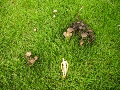 きれいな芝生の中から黒いものが見えたので近づいてみると、きのこだった。
