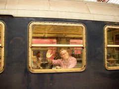 | 列車の窓から見知らぬ男が、ポーズを決めている。どうも写真を撮って欲しいらしい。どの国にもお調子者?がいるものだ。 |