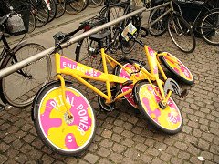 歩道で歩行者と自転車と衝突しそうになったり、タクシーがお客を乗せようと扉を開いて、車道を走る自転車と衝突するシーンを見かける日本とは、自転車に対する扱い方が雲泥の差だ。地価の高さとか土地の広さとかではなくて、これは、考え方や文化そのものの違いなんだと思う。 |