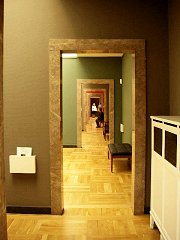 展示作品もさることながら、この建物自体にあちこち魅力かあって、興味が尽きない。展示室が並ぶところでは、あえて廊下にせず、部屋同士をつないで長くしていったため、まるで鏡を見ているような不思議な感覚を覚える。きっとここを設計した人は、何か意図したにに違いない。