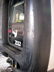 そして時間がない中でも、どうしても確認しておきたかったことがあった。それは、特急列車の先頭車を縁取る、この黒いモノ。日本では決して考えられないこの物体がどんな素材で作られているのかが気になっていた。この車両を生まれて初めて図鑑で見たときからの疑問だった。