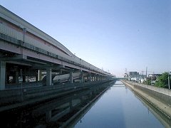 | 綾瀬川に沿って、首都高速6号三郷線が通っていて、環七通りとは、加平インターチェンジで接続している。この加平インターチェンジ、見るからにちょっと複雑な構造をしていて、興味深いが、自転車からは詳細をうかがい知ることはできない。 | ||||||