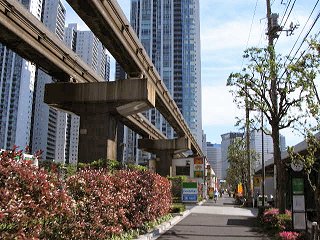 ![]() 京葉線を挟んで反対側が新木場駅。日が当たって明るい。 お台場まではあと少し。 |