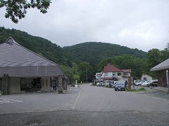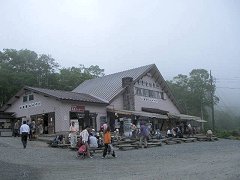 鳩待峠実際には、バスは30分ちょっとくらいで着いてしまった。時間にかなり余裕を持たせているのは、渋滞を見越しているからなのだろうか? 大清水と比べて人の数が格段に多い。尾瀬への距離が最も近い入口ということもあって、人気なのだろう。 |