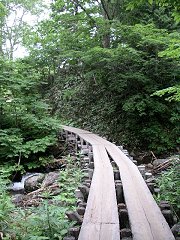![]() さっそく木道 実は、鳩待峠から尾瀬に向かう場合は、登山というより下山という感じだ。 目指す尾瀬ヶ原は、ここよりかなり標高が低いため、行程のほとんどが坂もしくは階段になっている。 |