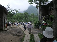 でも、その間、おみやげ屋を見て回ったり、登山のための準備をしたり…と、意外とあっという間に時間が過ぎていった。 旅先で、おみやげ物屋をゆっくり見て回ることもないので、意外とこういう時間は貴重。すでにここは標高1000mを越えているため、スナック菓子がふくれている。 明日は、ここに下山することになる。 |