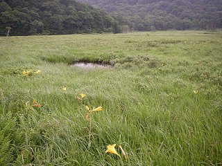 | 森を抜けたら、ようやく?ニッコウキスゲが、たくさん咲いているところに出てきた。ほんのちょっとだけだけど、気持ちが和む。 | |||