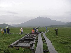 あとで知ったことだが、1mあたり3万円〜5万円もするという。木道の維持管理には、膨大な費用がかかっている。確かに、ヘリコプターに人力に…といかにもお金がかかりそうなものばかりだ。 |