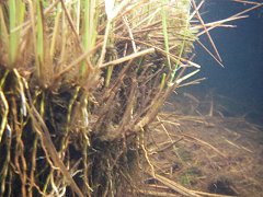 ふと、池塘の中がどうなっているのか気になって、水の中を撮影してみた。実はこのデジカメは、水中も撮影できるので、本領発揮といったところか。 |