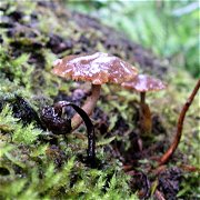 これまでの湿原とは違って、さまざまな植物が見られるようになった。きのこは植物じゃないか!? また初めて福島県の焼き印が押してある木道を見つける。 |
