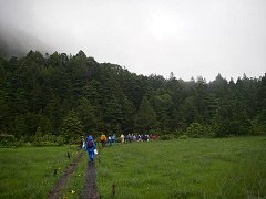 ![]() 山岳地帯に足を踏み入れる 湿原をあとにして、尾瀬沼までの4.5kmを歩き始める。 |