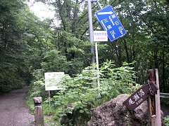 ここからは、これまでの登山道とは全く違って、自動車も通れるほどの砂利道になっている。関係者以外の一般車は通行禁止となっている。 以前は大清水から一ノ瀬まで一般車が乗り入れできるように工事が進められていた名残だろう。現在のような状況になるまでのいきさつはこちら |
