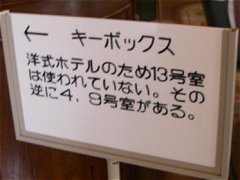 主に外国人宿泊客を対象としたということが、こんな感じで部屋番号にも現れているのが面白い。13号室がない代わりに、日本では忌み嫌われる4号室とか9号室がある。