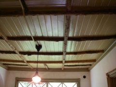 蚕の保温のために焚いた火の煙を逃がすために、屋根の上に小屋根を作ってあるのが、このあたりの建物の特徴。建物屋根に対して垂直に立っている屋根が「うだつ」と呼ばれるもので、もともとは防火壁的な役割があったものの、実際にはあまり役には立ってなくて、それよりも装飾的な意味合いが強かったらしい。「うだつが上がらない」のうだつの語源とも言われているみたい。