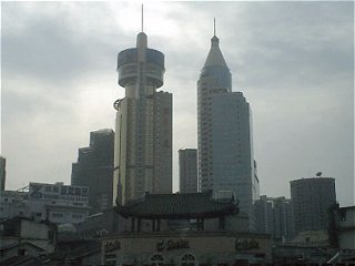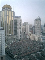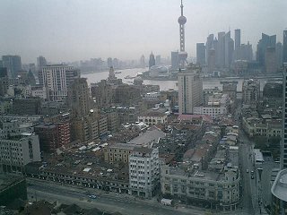 ホテルから、上海を象徴する東方明珠塔方面を見る。こちらもかなり古そうな民家がたくさん見られる。
