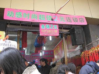 豫園商城で、2元ショップを発見。以前行ったフィンランドでは1ユーロショップというのがあったが、同じような発想は世界的にあるのだろうか?いや、日本の100円ショップに影響を受けたのだろうか? 2元というと、約30円ちょっとだから、日本の感覚からすると、かなり安い。 しかし売っている内容は、日本の100円ショップと、まったくと言っていいほど同じ。もっとも、日本の100円ショップで売っている商品の多くが中国製であることを考えると、別に不思議なことではないのかもしれない。 プラスチック製のケースだとか、洗濯ばさみだとか、手芸用品だとか、店作りの雰囲気も日本とまったく同じ。なかには、日本で売られるために作られたような日本語表記の商品もあった。 お店はかなりにぎわっているが、外国人観光客が多く訪れる豫園にあって、外国人らしき姿は全くなかった。なにもここでこういった日用品を買う人もいないか。