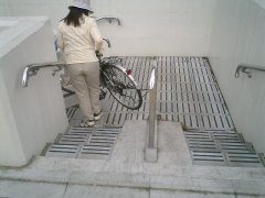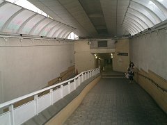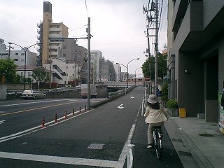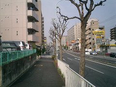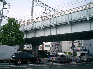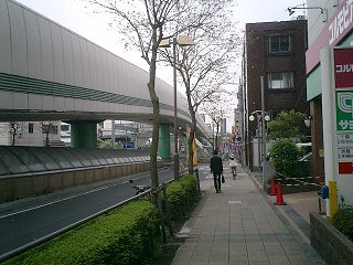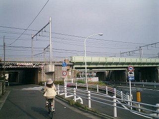 環八通りは、JR中央線の下をくぐっていた。歩道も同様にくぐるようになっていたが、歩行者と共用の階段がきつく、狭い上に階段の途中で曲がっているため、自転車をいったん持ち上げないと曲がりきれなかった。どうも自転車には厳しい。 |