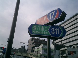 とても身近な国道17号線との交差点。直接ここの交差点にくれば環八通りへの最短コースだったが、完全制覇のためには、遠回りをしなければならなかった。大きな通り同士の交差点ではあるが、立体交差はしていない。 |