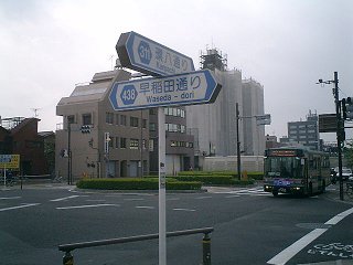 早稲田通り清水3丁目交差点 ようやく求めていた感じの標識に出会う。やっぱり交差点はこうでなくちゃ。 |