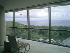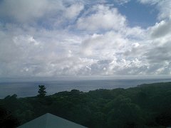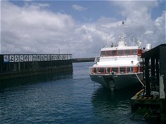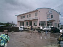 途中種子島に寄って、屋久島安房港には13時00分に到着。寄港した種子島を含めて、東京を出発してから屋久島に着くまで、ほぼ定刻通りだった。 屋久島に上陸すると、身体中が、むっとする蒸し暑さに覆われた感じ。つい先ほどまで雨が降っていたようで、いたるところに水たまりができていた。雲の合間から刺すような直射日光が降り注ぐ。これも屋久島ならではか? これから屋久島を離れるまで軽自動車のレンタカーを使う。係の人が自分の名前を持ったプレートを掲げて下船口前で待っていた。 |