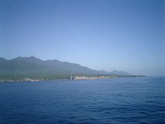 出航ギリギリ滑り込み…屋久島4泊5日と言いながら、最終日は屋久島7時ちょうど発の、高速船で鹿児島に向けて出発することにしていた。 レンタカーは高速船出発する安房港に置いておけばよいというので、これといった手続きは必要ないから、船が出る直前くらいに港に着けばいいかと考えて、実際に7時数分くらい前に到着。 しかし予想外のことが起きていた。駐車場が満車だったのだ。これはまったく想像していなかったので、かなり焦った。とりあえず、おじゃこに、車から降りてもらって、往路で手続きしたのと同じように、座席指定を受けてもらっている間に、止められそうなところを探す。 幸い安全地帯が空いていたので、無理矢理そこに止める。軽自動車だけあって、無理が利きやすい。 出航には、なんとか間に合った。もちろん僕らが最後の乗船客だったようだ。 |