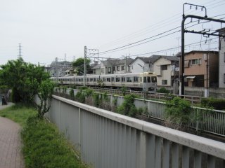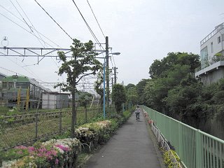どこまでも神田川と縁の深い路線だなぁ…と思いながら、車両基地と神田川の間の遊歩道を進んでいく。 井の頭線との並走は、もうしばらく続く。 |