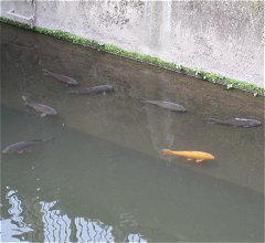 川底には大きなコイかフナが泳いでいた。 |