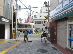 どうも、井の頭線の駅は、川のすぐ脇に作られる傾向があるみたいだ。 ![]() かなりの交通量がある環八通りが駅の真下なので、かなりごちゃごちゃしている。信号を渡るため、一瞬川から離れる。 |