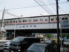 しばらく離れていた井の頭線と再び出会う。川のすぐ脇に久我山駅がある。 |