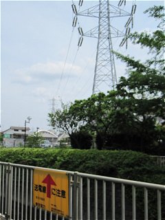 古い地図を見ると、明治生命、郵政省、三井不動産、日本興業銀行、新日鐵…と大きな企業団体のグラウンドが集まっている。現在は、いずれも売却され、マンション用地になりつつあるようだが、開けている感じだ。 川沿いにあった銅像。“川は”どうだっていうのだろう? いつの間にか高圧送電線が神田川と並走していた。川は蛇行しているが送電線は比較的真っ直ぐに引かれているので、井の頭線同様、何度もすれ違うことになる。 |
