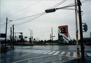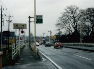 埼玉県庄和町(18日 11:05) 大凧で有名な庄和町を通過。やっと雨が上がる。車の通りは少ない。 |