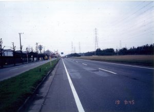 千葉県袖ヶ浦市(19日 9:45) とにかく広い。この道路は片側2車線ではない。その外にも、2車線の生活用道路も整備されいて、通り抜ける車と、その地域で生活している車とを分けているのだ。 なぜか車が一台もいないが・・・ |