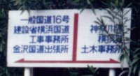 神奈川県横須賀市(19日 16:08) やっと発見。わかったようなわからないような標識であるのは、千葉側と同じ。 とにかくここからが、国道16号線。